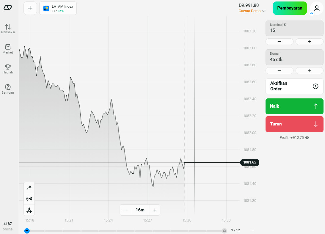 Kerangka waktu grafik (misalnya 1 menit sampai harian) membantu kamu memahami dinamika harga.