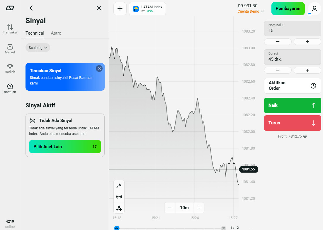 Di sisi platform, tersedia sinyal trading yang membantu trader memahami tren atau peluang yang sedang berkembang. Fitur signal di platform memberi indikasi bahwa suatu aset mungkin akan bergerak naik atau turun dalam periode tertentu.